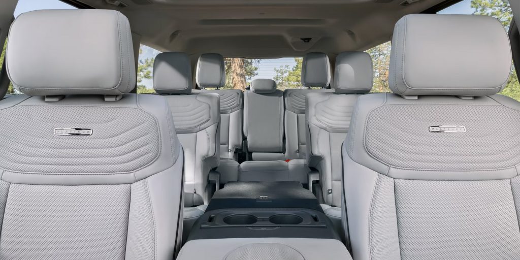 The interiors of the Ford Explorer ST vs. Platinum are designed to enhance comfort and convenience for both drivers and passengers. Both trims come with heated and ventilated front seats, a heated steering wheel, and premium seating surfaces, ensuring a cozy cabin environment even during colder months. The Ford Explorer Platinum trim takes comfort a step further with premium leather seats and accent stitching that showcase exceptional craftsmanship and durability, while the ST trim features ActiveX™ Seating Material with Miko® Inserts, Red Stitching, and ST Logo, staying true to its sport legacy. Seating configurations in these trims are versatile, offering second-row captain’s chairs and third-row seats to accommodate passengers or cargo as needed. This flexibility is especially useful for families or those who frequently transport a mix of people and gear. For added convenience, the second-row seats can be easily adjusted to improve access to the third row, while the Cargo Area Management System helps organize your belongings efficiently. Utilize the 85.8 cu.ft. of space however you see fit. The Active Motion front seats on Platinum provide a subtle massaging function that reduces fatigue, while the ambient lighting on both trims creates a relaxing atmosphere inside the cabin.