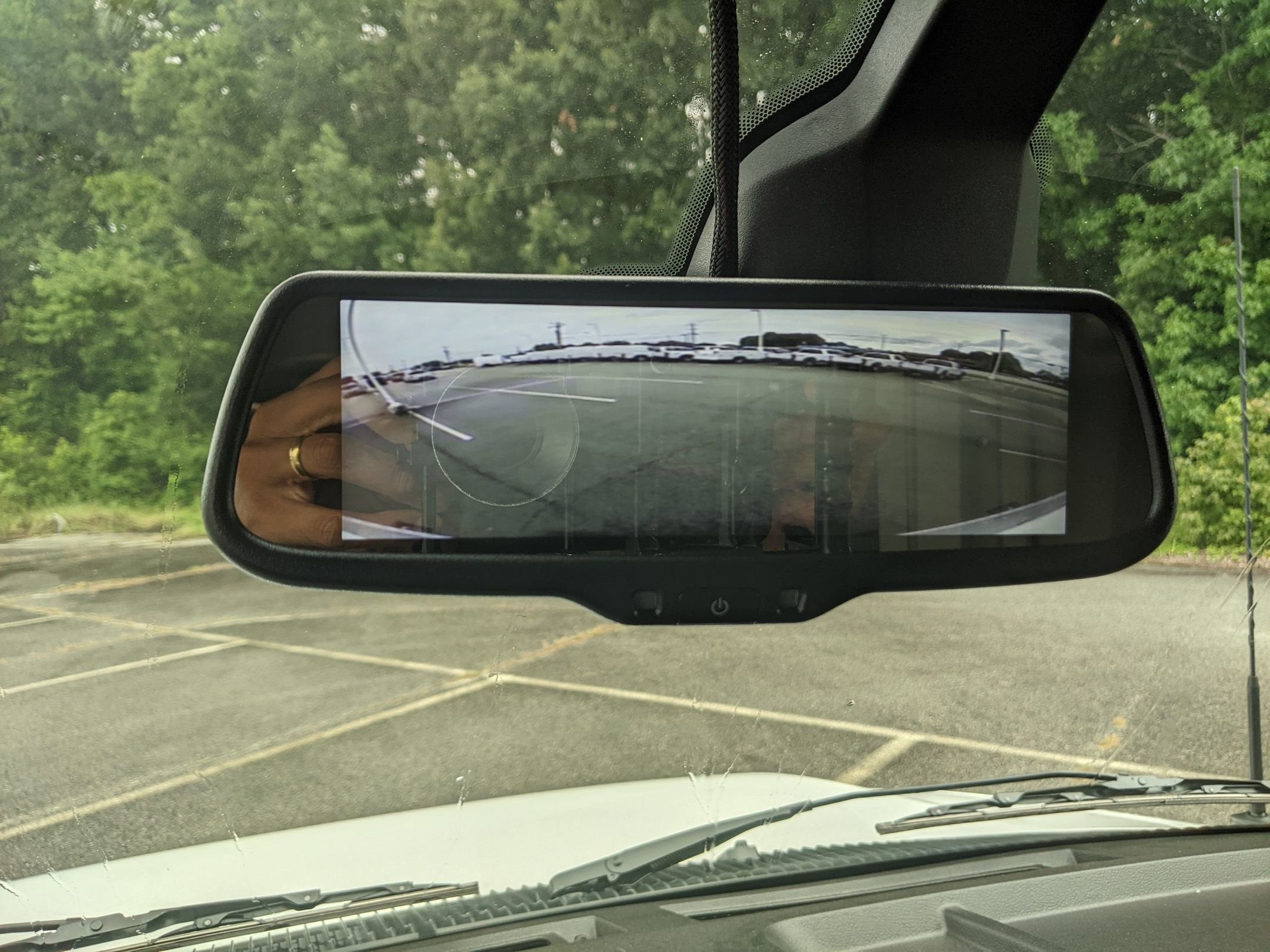 - REAR VIEW CAMERA KIT -inc: camera and large rear view video display that utilizes most of the mirror area