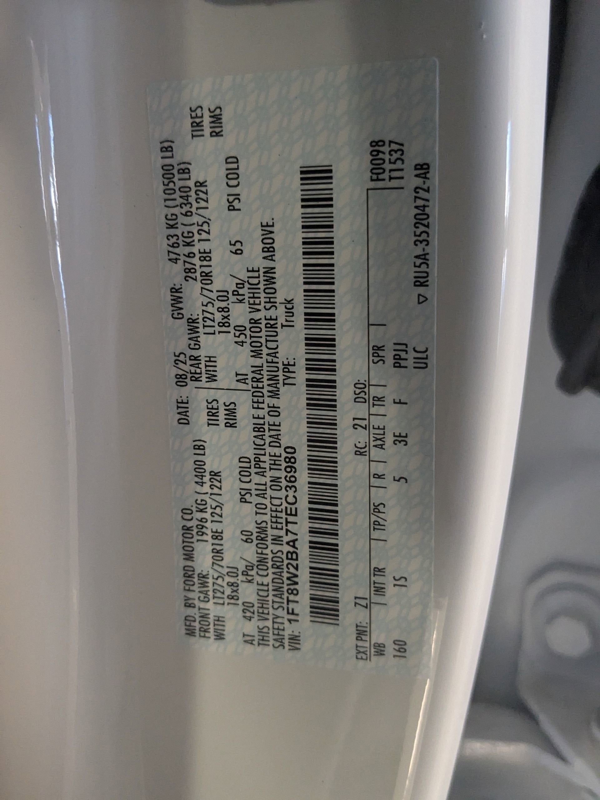 - GVWR: F-250 >10K Package