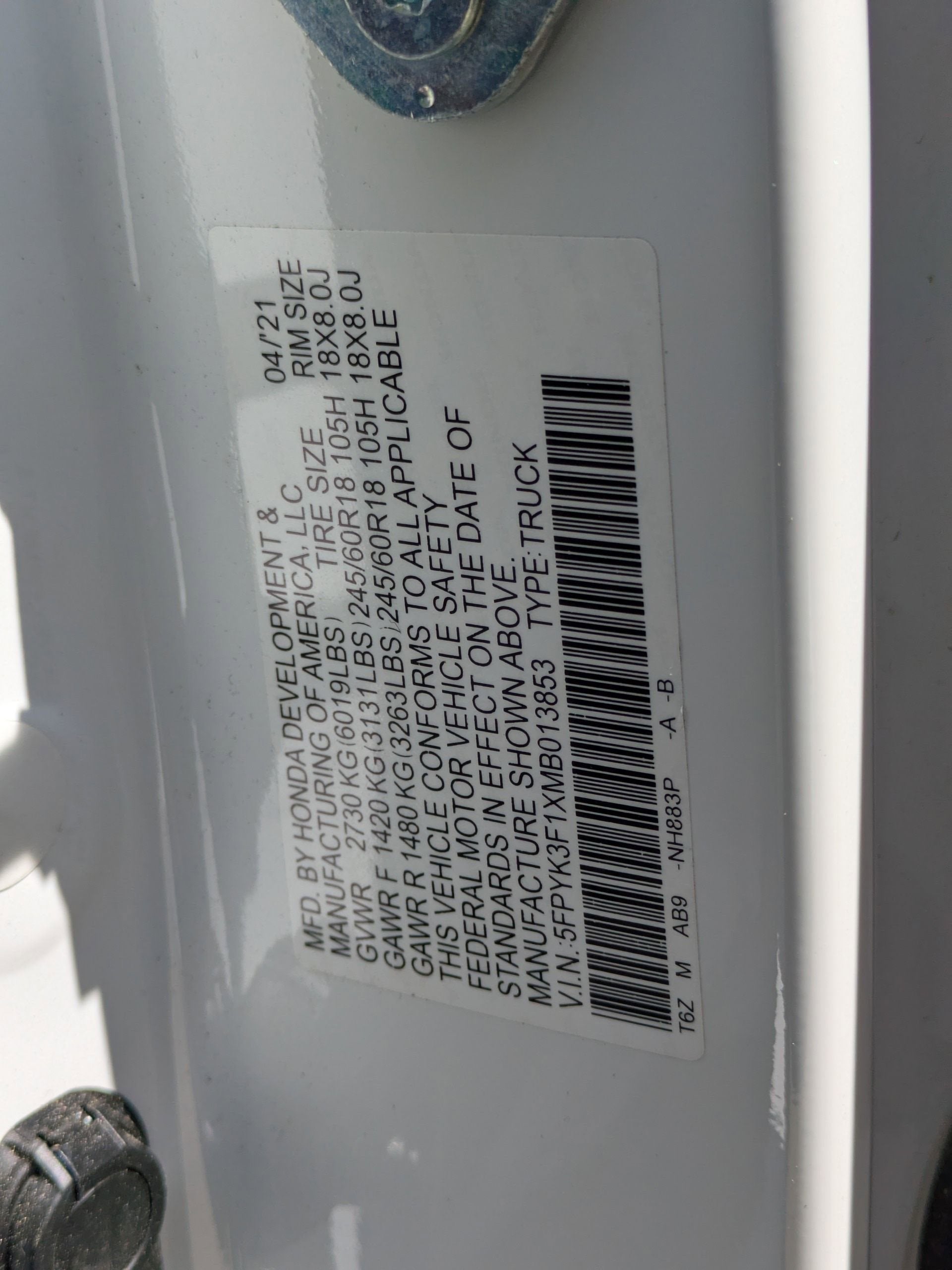 5FPYK3F1XMB013853