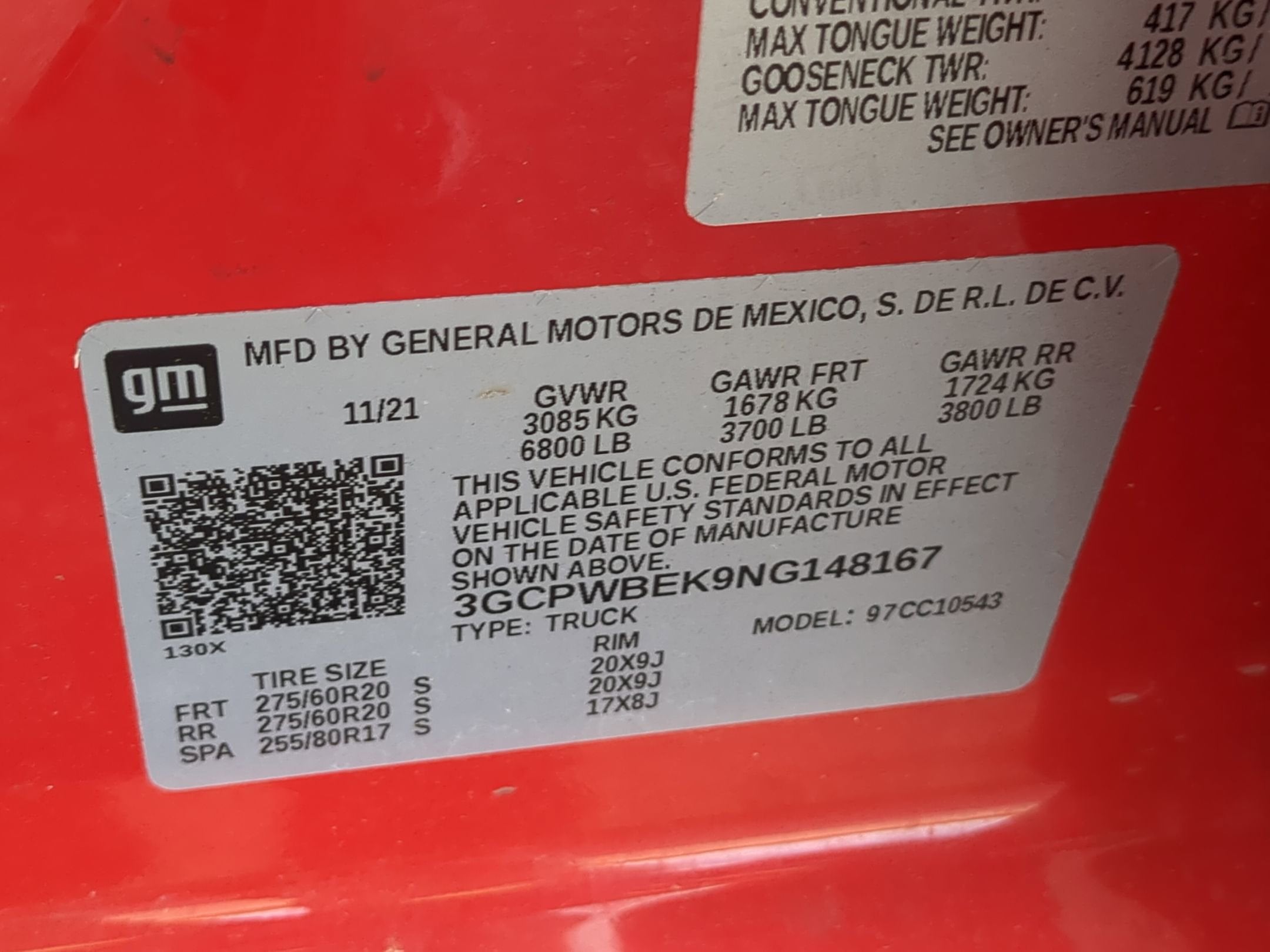 - Tires, 275/60R20 all-season, blackwall